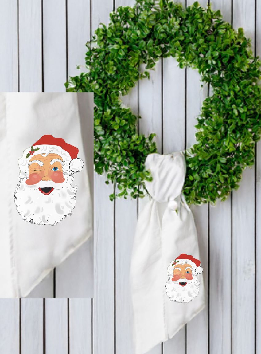 THIS SANTA IS EASY TO LOVE ON YOUTH AND ADULT SHIRTS, PILLOWS, TEA TOWELS, WREATH SASHES AND PILLOW SWAPS.