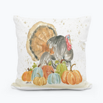 The square pillow is available in 18 x 18 and 22 x 22 inch size. This fall art is representing the season with not only the popular pumpkins but also with the turkey to represent Thanksgiving.