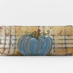 Add a cozy touch of fall flair with our Blue Pumpkin Plaid Lumbar Pillow. This 14x20" accent pillow features a hand-painted-style blue pumpkin set against a warm, rustic plaid background, splashed with painterly textures and rich autumn tones. It's the perfect blend of farmhouse charm and seasonal color, ideal for welcoming guests or curling up with a good book.