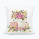 Add a touch of elegance to your fall décor with our Blush Pumpkin Bouquet pillow. This square pillow features soft watercolor pumpkins in creamy white and blush tones, surrounded by lush florals in rich pinks, corals, and golden greens. Perfect for transitioning your space into the autumn season with warmth and style. Available in both 18" x 18" and 22" x 22" sizes, it's a beautiful statement piece for your sofa, bed, or favorite chair