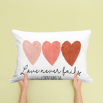 This heart pillow is rooted in the scripture verse featured on the art. The lumbar pillow is great for a gift or just the special item in your home.