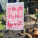 Add a meaningful pop of color and faith-inspired charm to your home with this art-based garden flag. Featuring the heartfelt phrase “Oh How He Loves Us” in beautiful shades of pink and red, this design blends uplifting sentiment with modern, artistic style. The expressive typography and layered color palette make it a standout accent for your flower bed, flower pot or garden.