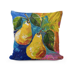 Brighten your space with this vibrant "Pears" art pillow by Kristie Coats! Bold, colorful impasto style in yellow, blue, green & pink. Uplifting accent for any room. Sizes: 12", 18", 22".