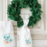 This Blue Heron is captured standing majestically on the sand by the artist. The design is printed on the LuckyBird 7 oz cotton wreath sash.  The sash is 52 inches long.