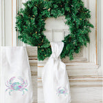 Would you find a crab in the ocean with these pretty colors?  The artist thinks so and she gave us a beautiful rendition of what she sees.  This design is featured on one of LuckyBird's wreath sashes.  The sashes are handmade out of 7oz. cotton and are 52 inches long.