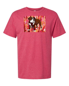 ABI'S BULLDOG ON ABSTRACT SHORT SLEEVE HEATHER PINK