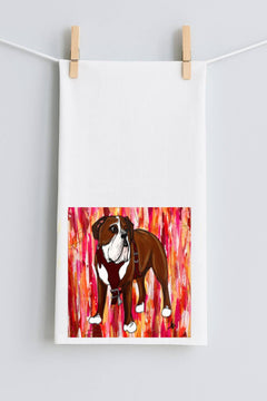 ABI'S BULLDOG ON ABSTRACT ON TEA TOWEL