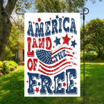 The red, white and blue Land of the Free design makes a great garden flag for this birthday celebration for our country. The garden flag is 12 x 18 inches and printed front and back.