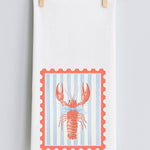 The Americana theme continues with the lobster in the traditional red, white and blue. The design is printed on LuckyBird's 100% cotton tea towel.