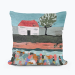 The Square Pillow is available in 18 x 18 and 22 x 22 inch size. A new type of art for LuckyBird , and one we think you will love, is shown in this folk art house piece.