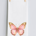 The multiple shades of pink with accent of gold on this butterfly will make a beautiful tea towel for your kitchen. The tea towel is 100% cotton flour sack fabric.