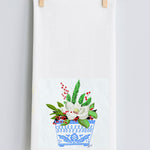 An unusually beautiful painting of the magnolia with hints of Christmas in the design on the cotton tea towel with hang loop.